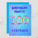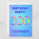 100th Birthday party invitation. Add a name and your details to make a fantastic birthday party invitation. The numbers are made from words connected with birthdays to get everyone in the mood!