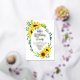 Classy and stylishly modern sunny sunflowers and eucalyptus greenery frame design girl "100th Birthday Party" on an editable white background. Back features a coordinating sunflower bouquet also on an editable white background. All artwork is uneditable. All text is gold foil. Text can be edited except for "Birthday Party" and the "th" ordinal indicator script text which is uneditable.