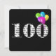 Bold black and white text on black background with colourful party balloons for 100th birthday party invite.