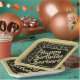 This centennial design has a black and gold random number pattern with a gold milestone 100 repeated in varied sizes and angles on a black background.  There is a square in the centre for your text and a black and gold frame around the rim.  This is a fun idea for your favourite centenarian's 100th birthday party or any event where you celebrate milestone number one hundred.