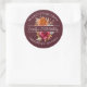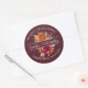 Add a special touch to your birthday invitation envelopes with this elegant round design. It features a bouquet of fall flowers in the centre. The name is written across the centre on a white strip, and the address is added in curved text above and below the rose bouquet. The flowers and text really pop against a burgundy background.