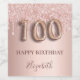Elegant, classic, glamourous and girly for a 100th birthday party. Rose gold and blush pink, gradient background. Decorated with rose gold, pink drips, paint dripping look. Personalise and add a name. With the text: Happy Birthday plus the birthday girls name. The text is written with a modern dark rose coloured hand lettered style script. Number 100 is written with a balloon style font.