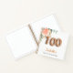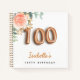 For an elegant and feminine 100th birthday party. A chic white background. Decorated with a rose gold and blush pink watercolored rose flower, floral, green eucalyptus leaves, sprigs, greenery and faux gold sprigs. Personalize and a name.  Black and golden letters.  The name is written with a modern hand lettered style script. Number 100 is written with a golden balloon style font.  Can be used as a guest book or for planning the party.