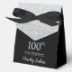 This fabulous modern 100th Birthday Silver Glitter Thank You favor box with sparkling silver glitter, the birthday girl's name in a trendy script font, and tied with an elegant black bow would be perfect for your event. It would be great for a candy station, on a thank you gift table, or at each place setting with a favor. Be sure you order enough for all your guests.