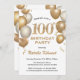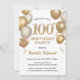 100th Birthday White and Gold Glitter Balloons Birthday Invitation. For further customisation, please click the "Customise it" button and use our design tool to modify this template.
