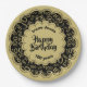 This is a purple and white random number pattern with fancy scallops and custom text. The gold milestone number 100 is scattered over a black background. The design is a very cool fun way to celebrate the past 100 years at your over-the-hill, 100th birthday party.