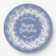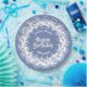 This is a blue and white random number pattern with fancy scallops and custom text. The blue milestone number 100 is scattered over a white background. The design is a very cool fun way to celebrate the past 100 years at your over-the-hill, 100th birthday party.