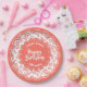 This is a coral and white random number pattern with fancy scallops and custom text.  The coral milestone number 100 is scattered over a white background.  The design is a very cool fun way to celebrate the past 100 years at your over-the-hill, 100th birthday party.