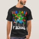 Celebrate the 100th day of school with this playful T-shirt featuring a dinosaur riding a monster truck. Perfect for preschool, kindergarten, and elementary students, it adds fun and excitement to classroom parties and milestone celebrations. A vibrant, energetic design kids will love.