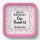 100th Party Random Number Pattern Pink/White Paper Plate