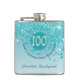 100th & Teal Blue Glitter & Drinking Quote Hip Flask