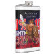 The flask itself is fine. It’s a cheap flask, obviously bought in bulk, however am prepared to overlook that. Given that it is a personalized item, I would have liked to have seen gift boxing instead of the generic packaging. Terrible printing, and/or quality. It’s a cheap, tacky vinyl. It is not cut straight and is also applied in a way that it is overhanging the bottom, causing the glue to catch on items and it will eventually roll and tear, damaging the wrap.
