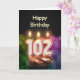 A birthday cake with candles. The candles are made up of the number 102, for a 102nd birthday. A birthday card suitable for everybody.