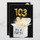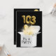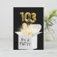 Gold balloons with sparkles and ribbons in a white box on black background for 103rd birthday party.