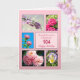 104th birthday card. Send beautiful flowers to a beautiful person. A birthday card with a beautiful sentiment. A collection of framed pictures of flowers on a pink background.