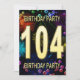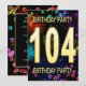 Add a name to customise this unique party invitation. 104th birthday party invitation with fireworks and bubbles. Add your details inside to create a perfect fun invite. Light up the sky with these glorious fireworks. An invitation to a birthday party that has style and loads of fun.
