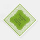 This modern design has is a bracket-shape printed over a green and white random number pattern which was created using a green milestone number 105 scattered in various sizes and angles over a white background. Your custom text is printed in the centre of the green bracket shape.