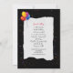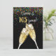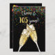 Champagne toast on black with colourful falling confetti for 105th birthday party invite.