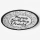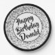 This modern over-the-hill design has a black and white random number pattern with a black milestone number 105 repeated in varied sizes and angles over a white background. There is a white circle in the centre for your text and black-and-white rings around the rim.