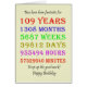 109th birthday card counting down the years, days, months, hours, and minutes. A card to give pause for thought! Leap years have been taken into account!