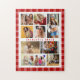 10 Photo Modern Trendy Red Plaid Stylish Name Jigsaw Puzzles features ten of your favourite pictures for an easy and quick DIY add your own photo collage. Personalise with your name and surrounded with a red plaid pattern. Makes a perfect gift for Christmas, birthdays, Mother's Day, sisters, best friends and more. Designed by © Evco Studio