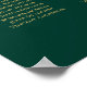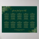 This seating chart will help your guests find their assigned tables at your wedding reception. The design is simple yet elegant with gold text on an emerald green background. The title is written in beautiful script calligraphy lettering and reads: please find your table. Chic, pretty and sophisticated with lacy floral faux foil gold filigree in the corners. Contains seating assignments for 10 tables at 10 guests per table or 100 guests.