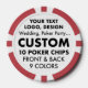 Design, create, make your own casino chips from a template or blank. These fun casino chips have an 'easy stack' textured surface. Choose from 9 colours of classic stripe on the poker chip edge: Red, Blue, Green, Black, Yellow, Pink, Orange, Light Blue and Grey, and customise the front, back and edge of your poker chips with a photo, picture, image or design, and add text, vividly printed on high quality composite plastic. Add your logo and branding for business promotion, and makes a perfect favour gift for a wedding, or token for a birthday, sweet sixteen or bachelorette party, corporate celebration or other special event. A great customisable, personalised gift for Christmas or any occasion. Poker Chip Dimensions: 1.55" diameter x 0.125" thick.