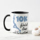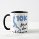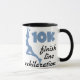 10K Blue Finish Line Exhilaration design T-shirts, hoodies, mugs, buttons, key chains, and much more with blue and black text and a silhouette female runner crossing the finish line. 10K runner apparel and gifts for anyone running a 10K.