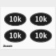 10k Race Run Walk Oval Sticker. Perfect for your favourite power walker or runner. Design features text in white with black background. Easily customise by choosing your own background colour! Priced by the sheet. Volume discounts available.
