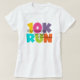 Bright various colours text that reads 10K RUN and black text that reads Determination Strength Endurance on running T-shirts, hoodies, buttons, bags, mugs, stickers, and other products for anyone who is training for or already has fun a 10K!