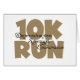 Tan text that reads 10K RUN and black text that reads Determination Strength Endurance on running T-shirts, hoodies, buttons, bags, mugs, stickers, and other products for anyone who is training for or already has run a 10K!