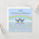 10th tin or aluminium anniversary invitation with two tin hearts floating on the water under a rainbow. Customise the sample text on the back (Text 4 to Text 8 in the text fields) with your own information for your event.