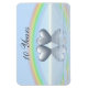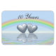 Magnet for 10th anniversaries with my artwork of two tin or aluminium looking hearts floating on the water under a rainbow. Customisable text says "10 Years".
