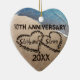 Easily add your own custom names or any text (shown example says: "10th Anniversary" and just change to what the anniversary year is, (like 1st, 2nd, 3rd, 4th, 5th, 15th, 20th, 25th, etc.) with names of the happy couple of sweethearts into the hearts to personalise this beautiful popular heart shape ornament with an original, professional photo of two hearts written in the sand along the blue ocean water to signify love and romance. Great concept for love, travel, just married, and upcoming summer save the date beach weddings, Anniversary, and Valentine's Day. A fun, cute, personal and unique keepsake ornament to give to her or him,  that special someone, girlfriend or boyfriend, future bride and groom or any sweethearts couple. This personalised design is on one side and is available with the design on two sides as well.