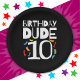 This Birthday Dude 10 design is perfect for a 10th birthday party celebration for boys turning ten years old. Features colourful kids party confetti w/ Birthday Dude 10 design that your little dude will LOVE!