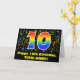 This happy, exciting, and vibrant birthday-themed greeting card design features a large number "10" having a rainbow spectrum gradient inspired pattern. It also features the message "Happy 10th Birthday,", and a custom recipient name. The front also features a pattern of various music notes and symbols having a variety of colours and sizes. The inside features a personalised birthday greeting message, or could perhaps be cleared and left blank if a message is to be written by hand instead. A customised birthday greeting card like this might be a fun way to send birthday greetings to a music composer, a musician, a singer, or somebody else who is celebrating their tenth birthday. [~Z0000426]