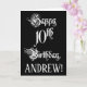 The front of this lavish and elaborate birthday greeting card design features the message “Happy 10th Birthday,” in ornate script style text, on a black coloured background. The inside has a personalised birthday greeting message, or could perhaps be cleared and left blank if a message is to be written by hand instead. A formal, personalised birthday greeting card like this might be used to celebrate somebody’s tenth birthday. [~Z0000554]