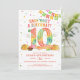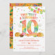Taco 'Bout a 10th Birthday Fiesta! Celebrate with this festive invitation featuring a large papel picado 10, chips & salsa, and tacos! This invite will set the stage for nacho average fiesta!