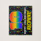 This bold and fun birthday jigsaw puzzle design features a large number “10” having a multicolored rainbow spectrum inspired gradient pattern. It also features the message “HAPPY 10th BIRTHDAY,”, and a customisable recipient name. The background features a joyful, colourful star field pattern. An upbeat, editable birthday puzzle like this might be given to celebrate somebody’s tenth birthday. [~Z0000607]