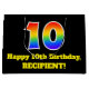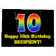 This vibrant and fun birthday gift-bag design features a large number "10" with a rainbow spectrum gradient inspired pattern, along with the message "Happy 10th Birthday,", and an editable name. It also has a black-coloured background. A colourful birthday themed gift-bag like this might be a fun way to wrap a gift or present being given to somebody who is celebrating their 10th birthday. [~Z0000521]