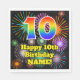 This exciting and joyful birthday paper napkin design features a large number “10” having a colourful rainbow spectrum gradient inspired pattern. It also features the message “Happy 10th Birthday,”, and a personalised name. The background features a vibrant and colourful pattern inspired by bursting celebratory fireworks. Paper napkins like this might be use at a party for somebody who is celebrating their 10th birthday. [~Z0000574]