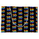 This vibrant and colourful gift-bag design features the number "10" having a rainbow spectrum gradient inspired pattern. The background is coloured black. A fun gift bag like this might be used when preparing presents being given to celebrate somebody’s tenth birthday, or perhaps a married couple’s 10th wedding anniversary, or some other tenth event. [~Z0000523]