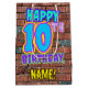 The front of this fun birthday-themed gift bag design features the message “HAPPY 10TH BIRTHDAY,” having a colourful, vibrant, urban street art and graffiti inspired look, in addition to a custom recipient name. The background features a pattern inspired by the look of a brick wall. A vibrant birthday themed gift bag like this might be used when giving a gift or present in celebration of somebody’s tenth birthday. [~Z0000536]