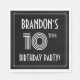 This stylish and 1920s-1930s style inspired tenth birthday celebration paper napkin design features a customisable name, a fancy art deco look inspired number “10th”, the message “BIRTHDAY PARTY!”, and a border pattern consisting of lines. The background is coloured black by default, but it can be customised to a different colour, if desired. Stylish paper napkins like these might be used when hosting a party for somebody in celebration of their 10th birthday. [~Z0000616]