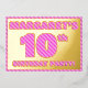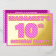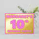 The front of this bold and fun tenth birthday party foil announcement card features a personalised name, a large number “10th”, the message “BIRTHDAY PARTY!”, and a border, all featuring a feminine dark pink and light pink striped pattern. The back features personalised details about the event, such as the date, time, venue, and any other relevant information. Customisable invitations like these might be used to invite guests/attendees to a birthday gathering/party being held to honour somebody’s 10th birthday. [~Z0000597]