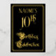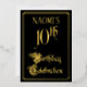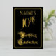 The front of this fancy, ornate, foil tenth birthday party/celebration invitation design features the message “10th Birthday Celebration” in opulent script-style text. It also has an editable name. The background of the front is coloured black by default (although it can be customised to a different colour). The back features personalised details about the event, such as the date, time, location, and any other information that may be relevant. Luxurious, opulent, editable invitations like these might be used to invite guests to a birthday party being held to honour somebody’s 10th birthday. [~Z0000589]