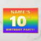The front of this upbeat and vibrant tenth birthday party foil invitation card design features a customisable name, a large number “10th”, the message “BIRTHDAY PARTY!”, and a border. The background of the front features an eye-catching, multicolored, rainbow spectrum inspired gradient pattern. The back features personalised details about the event, such as the date, time, place/venue, and any other important information. Customised invitations like these might be a fun way to invite attendees/guests to a birthday party being held in celebration of somebody’s 10th birthday. [~Z0000599]