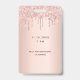 A modern, stylish and glamourous badge for a girl's 10th birthday party. A faux rose gold metallic looking background with an elegant faux rose gold glitter drip, paint drip look. The name is written with a modern dark rose gold coloured hand lettered style script. With the text: VIP Number 10 is written with a balloon style font, script.