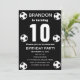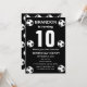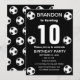 10th Birthday party for a soccer fan, sports, kids, boys, for him. Black and white, modern, elegant Birthday party invitation. Please personalise it with your details.