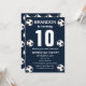 10th Birthday party for a soccer fan, sports, kids, boys, for him. Blue and white, modern, elegant Birthday party invitation. Please personalise it with your details.